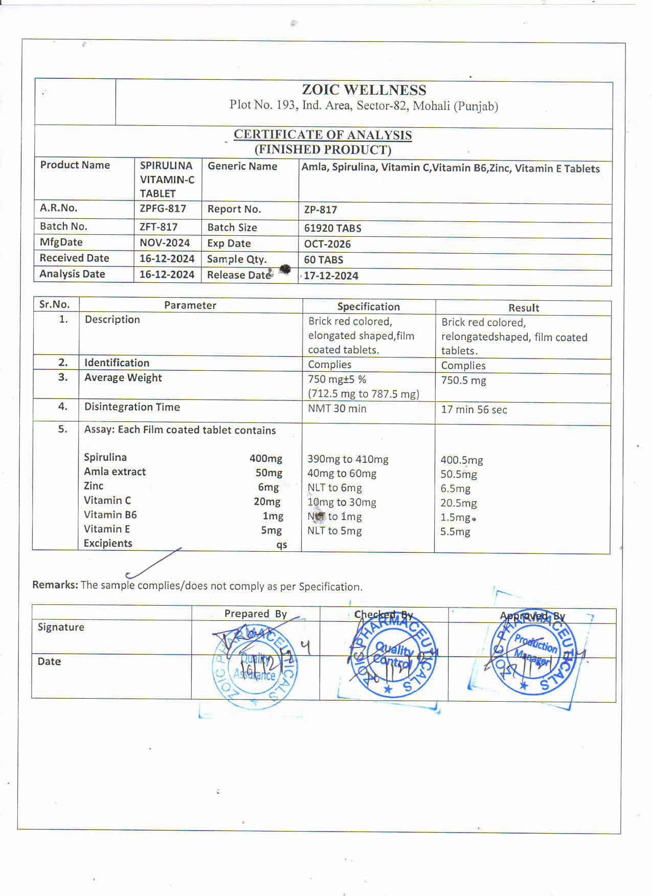 click here to download COA report.